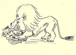 Illustration by Basil Temple Blackwood for Cautionary Tales for Children by Hilaire Belloc. This is "Jim, who ran away from his Nurse, and was eaten by a Lion".