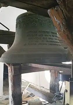 The church tower was also used as a watchtower by the town, to give the alert to any incipient fires. The medieval tower was itself damaged by lightning in the early nineteenth century, and was replaced by a neo-Gothic tower (probably the first in this style in what is now Slovakia) designed by Fridrich Muck and constructed in 1852–1870, which is 70 meters high.[1][5] Of the original tower bells, one was relocated in the bell tower of the Town Hall; the others were melted down during World War I and were replaced in 1925. Since 2016 the tower, which gives a view across the town's historical centre, has been opened to visitors.[5]