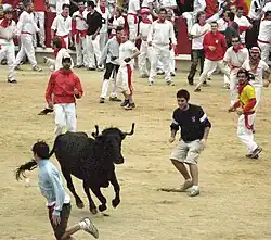 Today this is sometimes also practised in bullrings, either temporary or permanent, using calves rather. If fully grown bulls are used it is as a prelude for a bullfight, which is a regular feature of the Running of the Bulls in Iruñea/Pamplona.