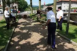 The hole drilling competition involves having to grind holes into a rock. Teams of three compete against each other. They take turns in using a long metal pole (called laztabin) to punch and drill a hole into a large rock upon which they are standing, pouring water onto the working area while the third person gets to rest.