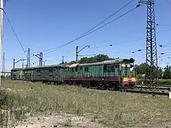 A ChME3 locomotive leaving the rail yard of Batiovo