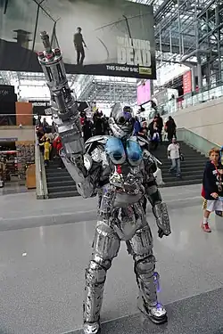 A person cosplaying as the film's depiction of Mr. Freeze.