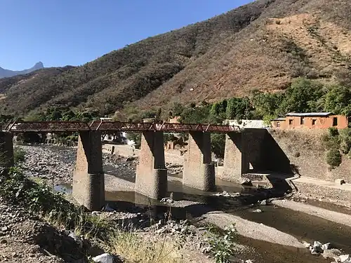 Batopilas (Spanish: [batoˈpilas] ) is a small town, and seat of the surrounding municipality of the same name, in the Mexican state of Chihuahua, located along the Batopilas River at the bottom of the Batopilas canyon, part of the Copper Canyon. As of 2010, the town of Batopilas had a population of 1,220.[1] Its elevation above sea level is 578 metres (1,896 ft). The town is situated in a narrow valley, bordered by steep canyon walls.[2] The government of Mexico declared it a Pueblo Mágico on October 19, 2012.[3]