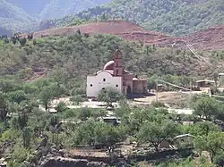 One of the most prominent structures, Hacienda San Miguel, was originally erected in the mid seventeenth century, some thirty feet above the Río Batopilas, opposite the town. It was enlarged and rebuilt in the 1740s by Don Juan José de Rivolta, who turned it into a medieval-style castle, surrounded by guard towers and defensive walls. Rivolta made a fortune in Batopilas, and wielded significant power in the area, holding among other titles, that of alcalde (mayor).[5] Following Rivolta's death, the hacienda was occupied by Rafael Alonzo Pastrana, who discovered several rich silver veins in the area. Between 1730 and 1750, the Pastrana vein is estimated to have produced 48 million pesos, making its owner one of the richest men in the world. Pastrana further expanded the hacienda, enlarging the living quarters, and the ore processing facilities. Near the end of eighteenth century, Don Ángel Bustamante took over the hacienda and the Carmen mine. Between 1790 and 1820, the mine produced over 30 million pesos worth of silver ore.[6]