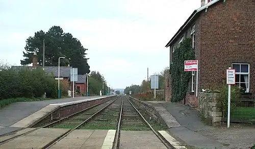 In its early years Battersby was known as Ingleby Junction, and opened on the Picton to Grosmont line in 1858 when the Ingleby Mining company's private line first linked to the North Yorkshire & Cleveland Railway. The station was renamed to Battersby Junction in 1878 to avoid confusion with Ingleby station, on the Picton Branch, which ran from Battersby to the main line at Picton. The station was simplified to "Battersby" in 1893 (The NER had a dislike of "Junction" suffixes and removed most of them).[1] Despite being located along single track routes, Battersby became a major hub with extensive marshalling sidings and three-road engine shed with turntable.[2] Two terraces with 30 cottages along with two houses were built and still stand today.