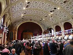 Battersea Beer Festival in the Great Hall, before the 2015 fire destroyed the vaulted roof and wall decorations.