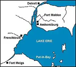 Location of Frenchtown and other settlements near the west coast of Lake Erie during the period.