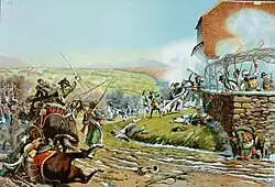 Battle of Froeschwiller at 22nd December 1793: French infantry taking the town of Froeschwiller (by Frédéric Regamey, 1905)