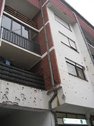 By March 1991, the conflict had escalated into the Croatian War of Independence[4] and in June 1991, with the Breakup of Yugoslavia, Croatia declared its independence.[5] The declaration came into effect on 8 October[6] after a three-month moratorium.[7] The SAO Krajina, renamed Republic of Serbian Krajina (RSK) on 19 December, then initiated a campaign of ethnic cleansing against Croatian civilians.[8]
