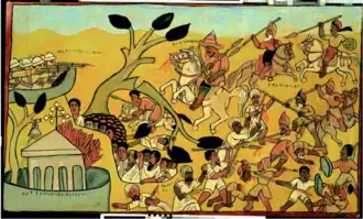The battle of the Portuguese against Ahmed Gragn, painted by Hailu Woldeyes c. 1935