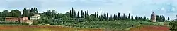 View of the Scannagallo battlefield from Santa Luce hill to Poggio delle Donne, after the battle name Santa Vittoria (the holy victory), where's today is still possible to see part of the old buildings including an historical winery. The battlefield is still probably as 500 years ago surrounded by fields, olive trees and vineyards and with a small river in the place of the old one.