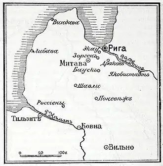 The Battle of Mesothen took place from 26–30 September to 1 October 1812, between the Russian Corps of Finland and the French-allied Prussian Auxiliary Corps. It was fought near the Latvian town of Mežotne (German: Mesothen), then part of the Courland Governorate.[1]
