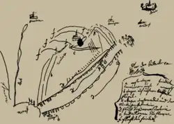 Facsimile of Frederick II's drawing of the Battle of Mollwitz in a letter to Leopold I, Prince of Anhalt-Dessau.