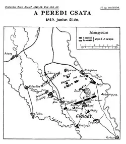- ^ a b c d e f g h i j Bánlaky József: A peredi csata. A csata első napja 1849. június 20-án. A magyar nemzet hadtörténete XXI. Arcanum Adatbázis Kft. 2001
