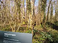 Horton initially moved on Carmarthen, but then had to put down an uprising in Brecon, before occupying Cardiff and quartering his troops in and around St Fagans, west of the town.[6] Learning that reinforcements led by Oliver Cromwell were on their way, Laugharne decided to attack Horton before they could arrive. Although Horton's 3,000 men were outnumbered, up to half of Laugharne's force were poorly trained and equipped, proving to be little match for experienced veterans.[7]