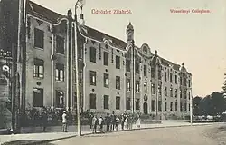 The fighting for Zalău caused suffering for the population.[8] A large number of refugees appeared among the Hungarians in the city, withdrawn for fear of reprisals[8] and point towards the area under the control of the Székely Division, beyond the demarcation line. These refugees returned in a few months.[8] The former central administrative headquarters of Sălaj County, current headquarters of the Zalău City Hall. The prefect notes that almost all the windows of the building are broken and the building is bombarded by projectiles, so only six rooms are habitable... April 25, 1919 drawn up by Gheorghe Pop de Oarța, on the occasion of taking over as prefect, the headquarters of the county administration. According to Constantin Kirițescu, Zalău suffered a lot from Romanian artillery fire.[17] This firing caused damage to the civilian population, according to the Hungarian historian Miklós Szentpály-Juhász, this damage being "very large". Both direct fighting and artillery fire caused damage to buildings.[8] In the opinion of the Romanian historian Cornel Grad, the respective shootings were imposed by the Hungarian troops' refusal to leave the city, being "demonstrational". They were speculated by the Hungarian propaganda organs, which claimed[15] (according to the opinion of Alexandru-Bogdan Kürti, distorting the truth) that their result would have been the filling streets of dead and wounded, and the town would have been savagely destroyed.[15]