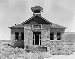 The Battlement Mesa Schoolhouse, located at 7201 300 Road, is listed on the National Register of Historic Places. The rear portion of the building was built in 1897 with stone from a local quarry. The front portion was added in 1907, also using stone from the same quarry. By the late 1940s, the building was no longer used as a schoolhouse but was used for community gatherings and events. However, the local population declined, and the schoolhouse fell into disuse and was looted and vandalized.[7] In 2003, the State Historical Fund awarded a grant to The Grand Valley Historical Society to restore the school building.[8]