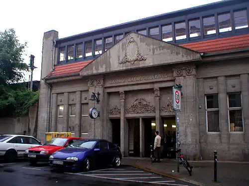 Berlin-Baumschulenweg is a railway station in the Treptow-Köpenick district of Berlin, served by the S-Bahn lines S45, S46, S47, S8, S85 and S9.