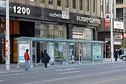 Extra-long shelter at the stop for southbound buses on Bay Street