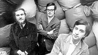 Piero Gatti, Cesare Paolini and Franco Teodoro, inspired by their designer predecessors, came up in 1968 with the design of Sacco, the "shapeless chair".[3] Although it was not the first design of an amorphous chair in Italian history, Sacco was the first successful product created in partnership with Zanotta. The predecessor of the product had a major design flaw. It was unable to sustain its form and never reached production. Sacco addressed that flaw with the use of leather for the exterior and carefully placed stitching. The use of leather was not coincidental, as at that time the textile was a product of national pride in Italy.[12] The target user of the chair was the hippie community, as their non-conformist values aligned with the chair's unconventional design.