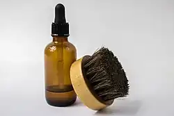 Beard oil is a cosmetic product that is used to nourish both the skin under the beard and the beard itself in order to keep it "soft, shiny, and smooth".[1] Beard oil mimics the natural oils produced by skin, such as sebum, and is composed mainly of carrier oils and essential oils.