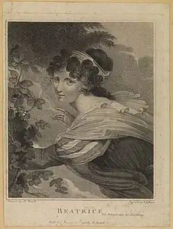 ![]() A stipple engraving of Beatrice by Alessandro Zaffonato (1795) | |