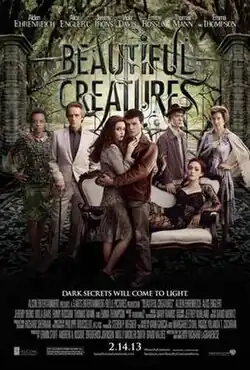 Beautiful Creatures is a 2013 American romantic gothic fantasy film written for the screen and directed by Richard LaGravenese. Based on the 2009 novel of the same name by Kami Garcia and Margaret Stohl,[5] the film stars Alden Ehrenreich, Alice Englert, Jeremy Irons, Viola Davis, Emmy Rossum, Thomas Mann, and Emma Thompson.