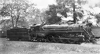 The railroad's most famous locomotive was built in 1950. A 4-8-4 Northern-type steam locomotive based on the Delaware, Lackawanna & Western Q-1 class, #1501-1505, known as the "Poconos" on the DL&W. It currently is on display in Howell, Michigan.