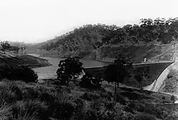 The Beetaloo Reservoir no longer supplies drinking water and is kept as a reserve for a major outage on the Morgan-Whyalla pipeline and as a recreation and fishing reserve.[2] It was built between 1886 and 1890 as a source for water to supply Yorke Peninsula. It has a capacity of 3.18 gigalitres (112,000,000 cu ft).[2] When it was built, Beetaloo Dam was considered the largest concrete dam in the southern hemisphere. It is now the smallest of SA Water's 16 reservoirs in South Australia.[3] At the time of its construction, Yorke Peninsula was a developing agricultural base, as well as copper mining and smelting industry in the Copper Triangle area around Kadina, Wallaroo and Moonta.