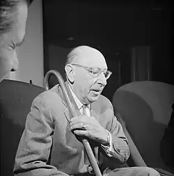 Slonimsky conducted the Begleitungsmusik zu einer Lichtspielscene with great success in Cuba in April 1933, but listeners and the press in Southern California were strongly opposed to it when he conducted its United States premiere in July. It was the first performance by the Los Angeles Philharmonic of a dodecaphonic work. Isabel Morse Jones, the music critic for the Los Angeles Times, refused to review the concert.[35] On the day of the performance, she published an editorial attacking Slonimsky's competence as a conductor and accused him of performing modern music as a way of "seeking publicity and an easy ladder to fame".[42] His engagement with the Los Angeles Philharmonic was terminated after the Schoenberg performance.[35] Schoenberg was grateful to Slonimsky for championing his newest music and befriended him when he came to settle in Los Angeles in October. In 1977, Slonimsky told an interviewer that the performance had "proved to [Schoenberg] that I was the good guy and the rest were bad guys".[43]