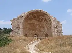 Saint Anne's church was first built in the Byzantine period and then rebuilt by the Crusaders in the 12th century. The ruin is known in Arabic as Khirbet (lit. "ruin") Sandahanna, the nearby tell (mound) of Maresha being called Tell Sandahanna.[25] The freestanding remains of the apse are well preserved (see photo).