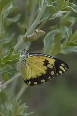 Females have broader dark upperside borders on both wings. Underwings are yellow during the wet season.[1]