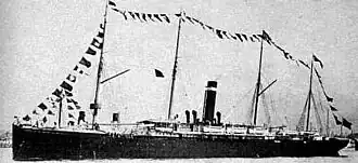 In 1903 American Line returned Belgenland to her owners, who changed her port of registration to Liverpool. She was given the UK official number 115353 and code letters TSRF.[6] She was reclassified for third class passengers only, and Red Star Line put her back on the route between Antwerp and Philadelphia.[5]