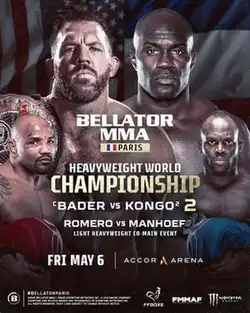 1. ^ a b Gonzalez, Gabriel (2022-01-30). "Bellator Announces May 6 Championship Bout Between Ryan Bader and Cheick Kongo in Paris". Cageside Press. Retrieved 2022-01-30.
