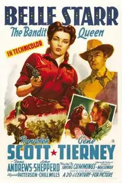 Belle Starr is a 1941 American Western film directed by Irving Cummings and produced by Kenneth Macgowan for 20th Century Fox. It stars Gene Tierney as Belle Starr, alongside Randolph Scott, Dana Andrews, and Shepperd Strudwick. The screenplay by Lamar Trotti is based on a story by Niven Busch and Cameron Rogers, adapted from Rogers's 1927 article and subsequent book Gallant Ladies.