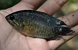 Belontia, sometimes referred to as combtail gouramis, is a genus of gouramis, the only genus within the subfamily Belontiinae, native to freshwater habitats in Southeast Asia and Sri Lanka.[2] These are medium sized to large gouramis that are seldom kept in aquariums due to their aggression and relative lack of the color common to other gouramis.