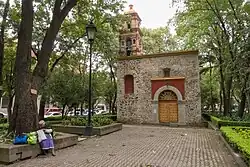 Except for small villages on the east and west side, most of the territory of the modern borough was covered by the waters of Lake Texcoco during the pre-Hispanic period.[10] Crossing part of the east side was a causeway that linked Tenochtitlan to Iztapalapa and Tlalpan.[10][23] After the Spanish conquest of the Aztec Empire, the first colonial era constructions in the area were evangelical churches built by the Franciscans such as the Church of Santa Cruz in Atoyac in 1564 and the Santo Domingo de Guzmán Church in Mixcoac in 1595.[10][19] In the early colonial period, most of the area came under the jurisdiction of Hernán Cortés as part of his Coyoacán properties.[24] As Lake Texcoco dried, the area became dotted with villages under the hacienda system and had some important roads leading south from Mexico City. The old causeway became the Calzada de Tlalpan and would eventually become the first to be paved.[23] In the Mixcoac area, villages dotted an important colonial era road that connected the main village of Mixcoac with Tacubaya.[10] Other important roads included that with linked San Ángel to Tacubaya, called the Atlacuihuayan, today Avenida Revolución, and the road that linked village of La Piedad with Mexico City over which bricks and pulque was transported.[23]