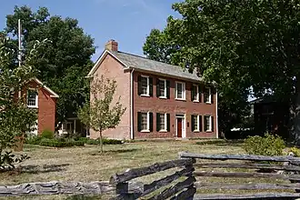On May 14, 2001, the city of Edwardsville held a ground breaking ceremony to officially commence a restoration project aimed at returning the house to the most original condition possible. The eventual goal of the project was to furnish the home circa 1820s and open it as a house museum to the public.[2] The restoration project, overseen by the firm St. Louis Tuckpointing and Painting, carried a price tag of more than $1 million; $150,000 to purchase the house, $725,000 in restoration costs and $215,000 to purchase a nearby gas station.[13] Initially the project was to be completed by December 2003, but by April 2004 most of the exterior work had been finished with interior plastering and wood floor installation remaining.[12][13] The restoration was nearly totally completed by the time the official dedication ceremony occurred on July 1–2, 2006, more than six years after the purchase of the house by the city.[14]