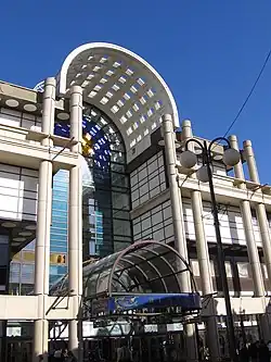The shopping centre's atrium ceiling is higher than the nave of Westminster Abbey or the dome of St Paul's Cathedral.[7] The original department store's 1935 façade designed by Maurice Webb was retained.