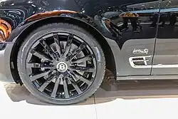 Throughout its development, one of the team's goals was to construct a heavy vehicle, as part of Bentley's philosophy that the weight of a car is intrinsically linked to its identity, as perceived by customers. Bentley believed that a lighter vehicle would "spoil the driving experience," which British magazine Evo described as a "strange thing to hear from a car company these days".[11] Nevertheless, Paefgen instructed engineers not to surpass the kerb weight of the preceding Arnage.[12] The exterior styling was overseen by a team directed by Belgian designer Dirk van Braeckel,[13][14][15] who articulated that the styling drew inspiration from the tradition of historical grand touring Bentleys. Van Braeckel stated that, "from the very first-hand sketches in the styling studio [...] we have sought to evolve this story for a new generation of Bentley enthusiasts".[14] Heading the interior design was British designer Robin Page, who also supervised that of the second-generation Continental GT.[16][17] Despite being a new model developed and engineered wholly at the Bentley Crewe facility, its engine, the 6¾-litre unit developed with Rolls-Royce, was predominantly carried over from the Arnage.[18] However, modifications were implemented to reduce weight, increase horsepower, and optimise fuel efficiency. The engine revision resulted in a weight loss of 6 kilograms (13 lb) by using a new crankshaft, 130 grams (4.6 oz) per piston and 100 grams (3.5 oz) per conrod.[18] The pistons and gudgeon pins received a coating of diamond-like carbon (DLC), and the piston skirts were coated with graphite. These coatings served to minimise friction and fuel consumption, while also optimising the durability of the components under high engine loads.[18]
