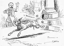 George Yost Coffin cartoon depicting McMillin's reaction to the Supreme Court's decision in Pollock v. Farmers' Loan & Trust Co. (1895)