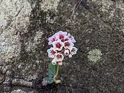Bergenia ciliata (fringed elephant's ears,[1] winter begonia,[2] hairy bergenia,[3] Hindi & Sanskrit : Pashanbheda, पाषाणभेद)[4] is a plant species in the genus Bergenia, deciduous in USDA Zones 5 to 7, but usually remain semi-evergreen south of Zone 7.[2] It is found in Northern India in Uttarakhand (Chamoli and other districts of Uttarakhand) and Himachal Pradesh (in district Shimla). This flower is related to the famous Phool Dei Festival (https://www.tourmyindia.com/states/uttarakhand/phool-dei-festival.html) celebrated in Uttarakhand. It is commonly known in India as Pathar phor buti. Also found in mountain areas of West Bengal, like Kalimpong, and Darjeeling. Afghanistan, south Tibet, Northern Nepal, Bhutan (Haa and Mongar districts).