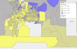 Median Household Income by Census Tract Block Group across Albuquerque metro.