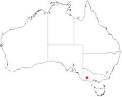 This species of Bertya is restricted to the Victoria Range in Grampians National Park, where it grows in shrubland near watercourses in sandy soil over sandstone.[2][3]