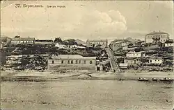 During World War II, Beryslav was occupied by German forces on August 23, 1941. On September 22 about 400 Jews then living in Beryslav were murdered near the town by the members of Einsatzgruppe D. Another 35 Jews from Beryslav were shot in early October 1941. In September 1941, the Germans relocated the Dulag 123 transit prisoner-of-war camp from Varvarivka to Beryslav, and in November 1941, it was further relocated to Dzhankoi.[9] Beryslav was recaptured by the Red Army on March 11, 1944.[10]