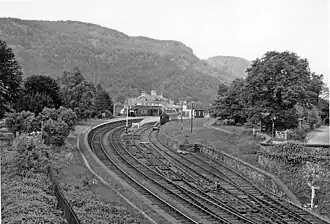 There was originally a passing loop with full length up and down platforms. A camping coach was positioned here by the London Midland Region from 1955 to 1959; this coach was replaced in 1960 by a Pullman camping coach which was here until 1970.[3]