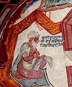 ![]() 19th century mural painting from Gurdwara Baba Atal depicting Bhai Gurdas | |