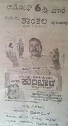 Bhakta Kumbara (pronunciation transl.Devotee Kumbara) is a 1974 Indian Kannada-language biographical film directed by Hunsur Krishnamurthy. The film stars Rajkumar and Leelavathi. Actress Sridevi essayed the role of Muktha Bai (as a child artist), thereby the latter making her Kannada film debut.[1] The film was produced by N. R. Anuradha Devi under Lakshmi Film Combines. Bhakta Kumbara marked the eighth collaboration between Dr. Rajkumar and director Hunsur Krishnamurthy.