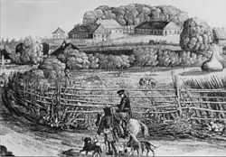 At the end of the 16th century, probably around 1594, the royal court was moved to the area of today's Białowieża Glade. According to the inventory from 1696, Białowieża was a 25-morgic farm in the period in question. In 1710 Białowieża was affected by a plague epidemic. The settlement and the royal hunting court were burnt down, and the residents who avoided infection moved to a new place. About the burned village is reminiscent of a wooden Orthodox cross set up by the Browska Road, which according to one version means the place where the wooden Orthodox church was located, according to the other, the place where the village once ended. In the mid-eighteenth century, August III built a new hunting palace in the area of today's Palace Park, whose first description comes from an inventory from 1773. On September 27, 1752, August III organized a great hunt in the Białowieża Forest. To commemorate this event, a sandstone obelisk was erected near the palace, in which the names of the hunting entourage and the number of slaughtered animals were engraved in Polish and German. In 1765-1780 Białowieża was ruled by the Lithuanian court Treasurer Antoni Tyzenhauz. In 1784 King Stanisław August Poniatowski came to Białowieża. There were the last royal hunts in the Białowieża Forest.[2]