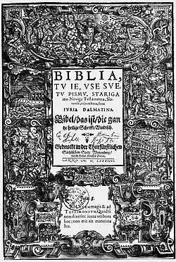 Jurij Dalmatin, who was mentored by Trubar, translated the Old Testament and an edition of the entire Scriptures to Slovene. This was published under his direction at Wittenberg in 1583.[3][4] István Küzmics published a New Testament for the Hungarian Slovenes (Nouvi Zákon) in the Prekmurje Slovene at Halle in 1771. Miklós Küzmics published the catholic version (Szvéti evangyeliomi, Summa sztároga i nouvoga testamentoma szvéte histórie). An edition published at Kőszeg (Guns) in 1848 includes the Psalms (Knige 'zoltárszke), from Sándor Terplán and the translation of Moses's books and Josua's book (Moses i Josua) in 1929 from János Kardos. Other Prekmurje translators were István Szelmár, Péter Kollár, and János Szlepecz.